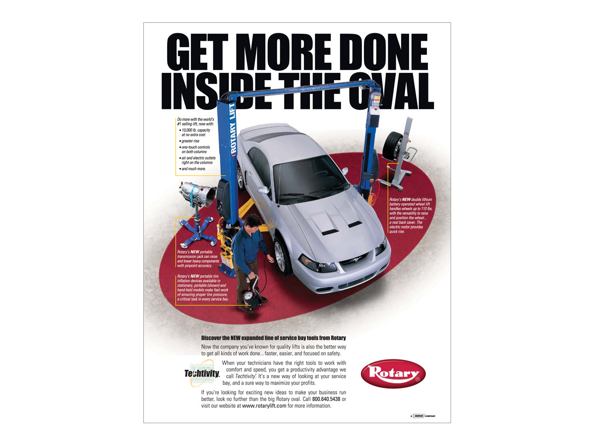 Hinting at the introduction of an innovation in the heavy-duty automotive lift industry, these teaser ads are embellished with Art Deco borders to reflect the time period of the examples of innovation pictured.
